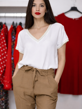 Notre collection de hauts regroupe chemisiers, tuniques et t-shirts, pensés pour répondre aux exigences du quotidien comme aux occasions spéciales. Chaque pièce est développée avec des matières de qualité, disponibles en versions unies ou imprimées, avec des possibilités de personnalisation grâce à la teinture sur pièce.